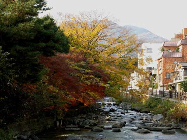 湯河原は温暖な土地まだまだ紅葉が見られ、街中を流れるちとせ川は小鳥も遊ぶ美しい清流でハイキングにはもってこいの場所だった。