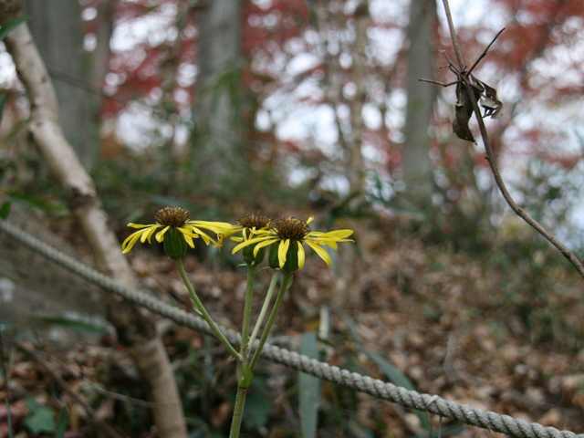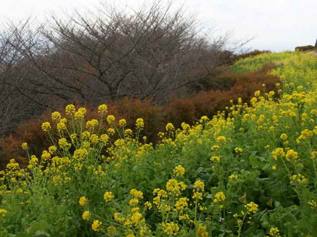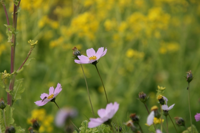 かすかに菜の花を期待していたがなんと紅葉、枯葉、コスモスそして菜の花という不思議な景色を体験する事になった。