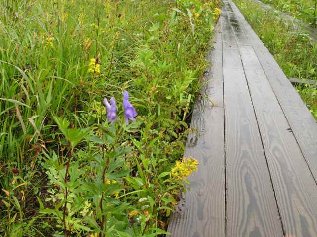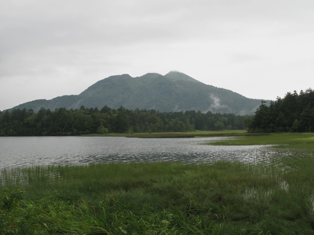 雨上がりに足元ばかり見ていた目を上げると燧岳が現れうれしくなる。