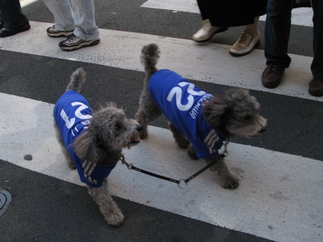 全日本の加治と中沢のユニフォーム姿のワンちゃん、2匹一緒でとてもかわいね。