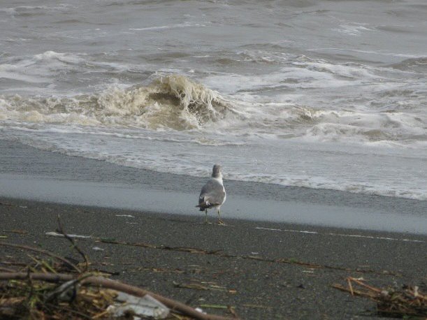 私の野次馬魂がむっくと湧き出して自転車で海岸まで視察に行く。