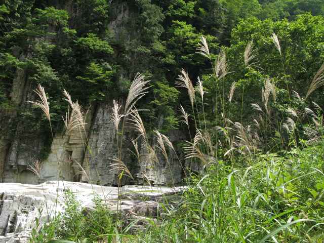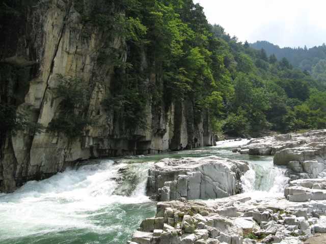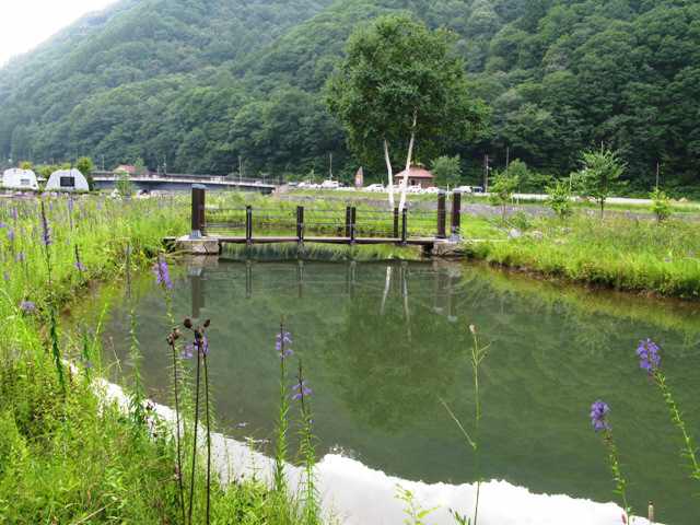 川(檜枝岐川)の方へ下ると目の前にすばらしい光景が広がっていたのでした。