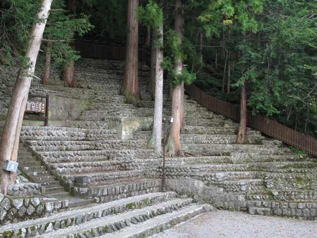 観覧席はいつ頃で出来たのか地形を生かして石で階段ができていた。