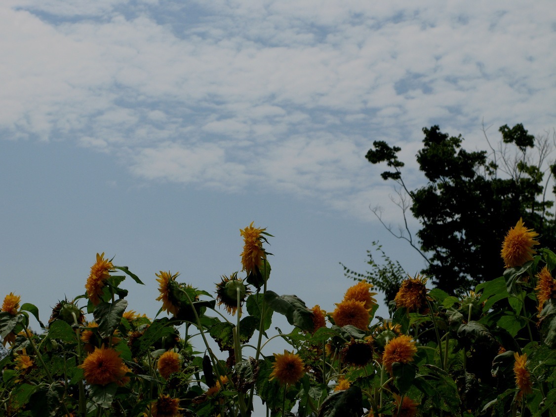 夏真っ盛りとはいえ、夏雲に加えひつじ雲が空高く広がっています。
