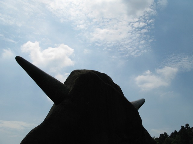 公園内の風神様も夏の暑さに負けずじっと雲の行方を見上げていました