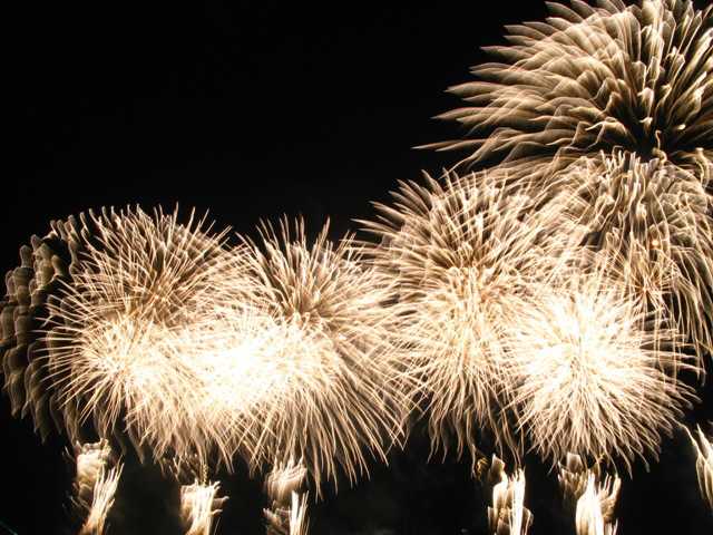 仕掛けではなく、たくさんのスターマインが夜空いっぱいに打ち上げられるものだった。