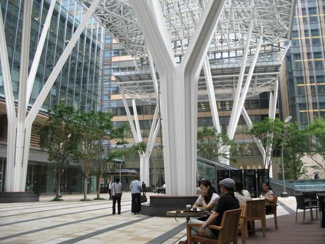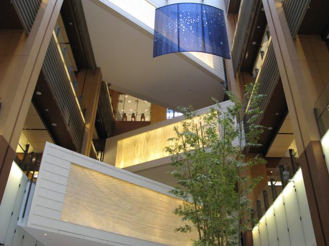 3階まで吹き抜けのロビーにはショップ、カフェもあって広々とゆったりとくつろぐ事ができる。