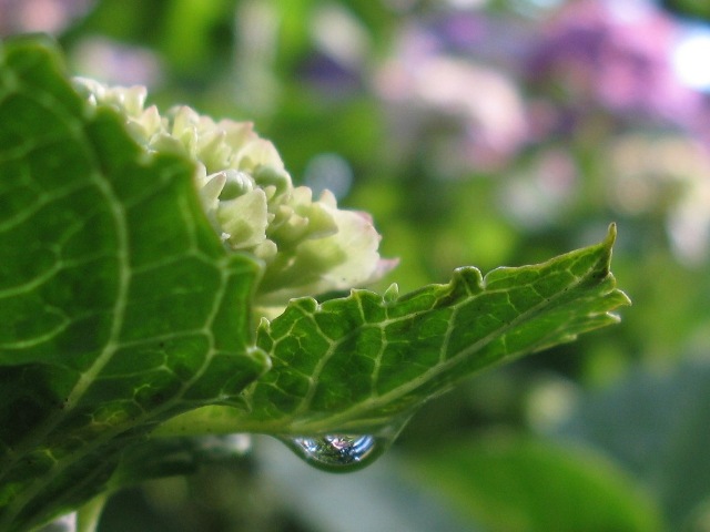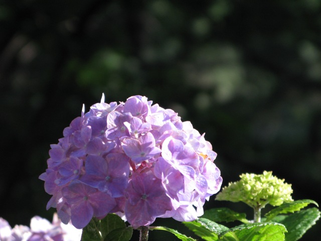 この裏の方にはたくさんの紫陽花が朝の光を浴びて輝いていた