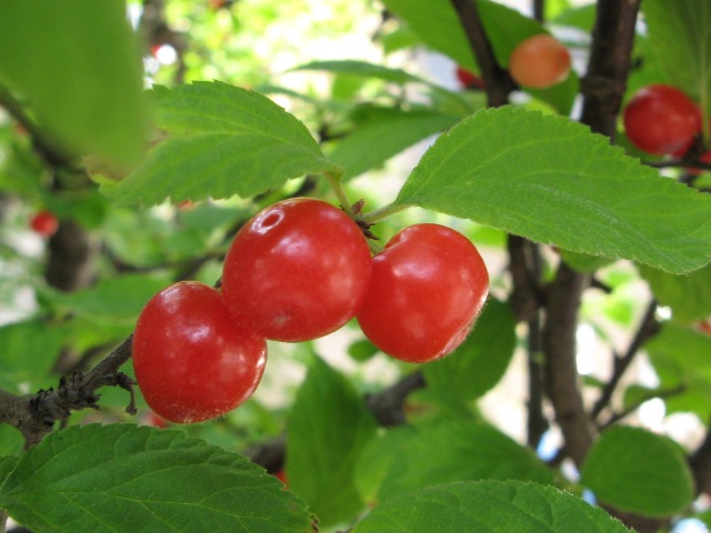B「ユスラウメ」の実、桜桃梅と書くそうだ。(太宰の桜桃はさくらんぼ)