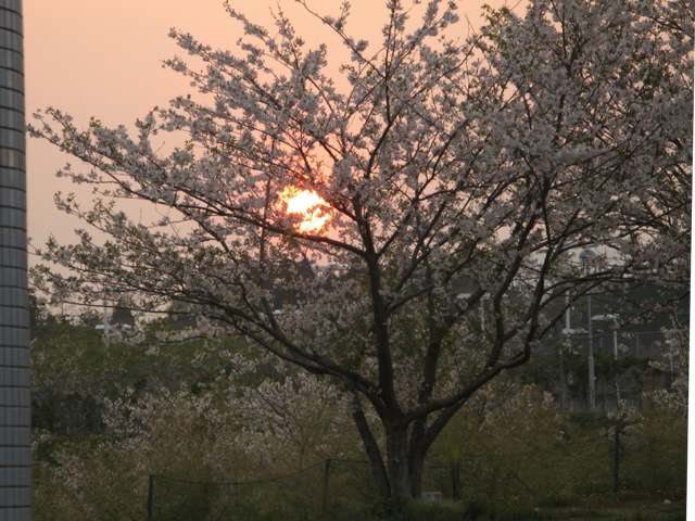 Aサクラの花の中に見えなくなる太陽。