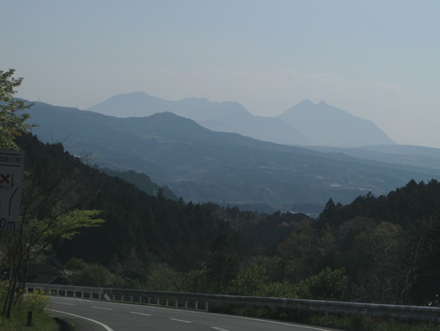 車から見られた由布岳の雄姿(右奥)