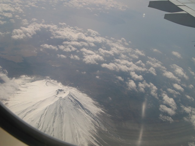 まだかまだかと遠くを眺めているとなんとまさしく眼下に富士山の頭をはっきりと捉える事ができた。