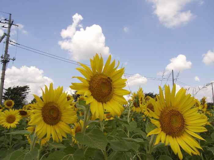 厚木観光センターで場所を聞いたり、紅ふじさんの紹介もあって、地図を頼りに座架依橋近くのひまわりを見に行った。数箇所にあって50万本とか書いてあった。花は大きくなりそれは見事でした。 夏の日差しを浴びたひまわり風景は『少年時代』の歌と重なるのは私だけでしょうか。自分の懐かしい子供時代を思い出させるのかもしれません。 8/14写