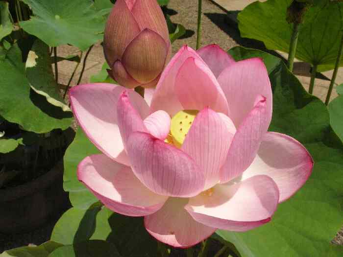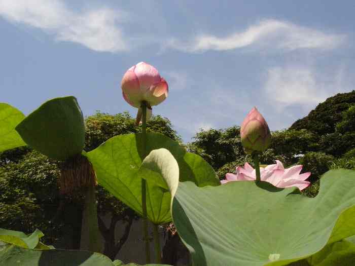 朝から太陽がじりじり照り付けている お米がなくなってしまった。 どうしても買い物に行かねば・・・ そうだkamaさんページで教えていただいた蓮を見にいってみよう 大きな鉢に丁寧に育てられたはすが見事に咲いていた。 「小針沼古代蓮 」の株もあったがまだ開いていなかった。 古代はすと言うのは弥生時代の種の子孫でしょうか。 場所は一号線から豊田道に入り、2本目の角に要法寺という案内板があるのですぐわかった。 駐車場も快く置かせてくれた。 それから買い物です。 7/15写