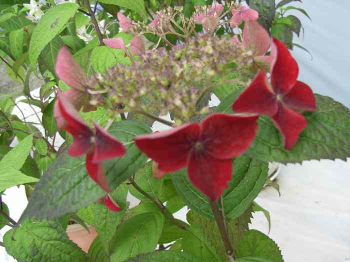赤く染まった「クレナイ」と言うアジサイが陳列してありました。