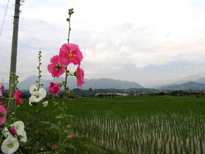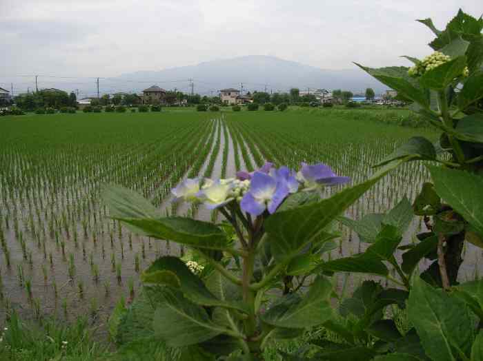 アジサイの里から花を尋ねて7,8キロ、のんびりと遠くに山を見ながらハイキング。