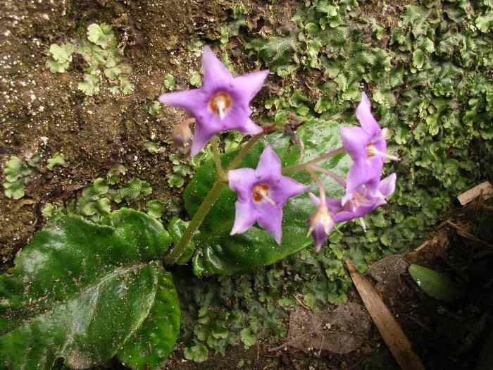 湿っぽい岩肌に咲く『岩タバコの花』一株だけ残っていた。