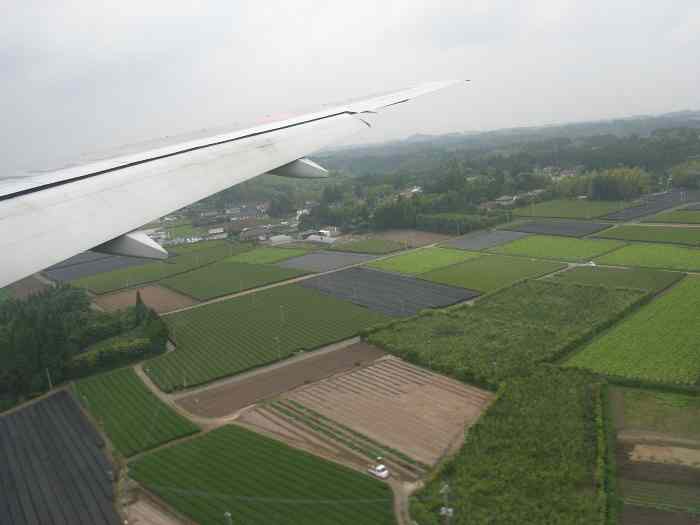 ←鹿児島空港着陸前、機体を旋回させたとき見えた鹿児島の