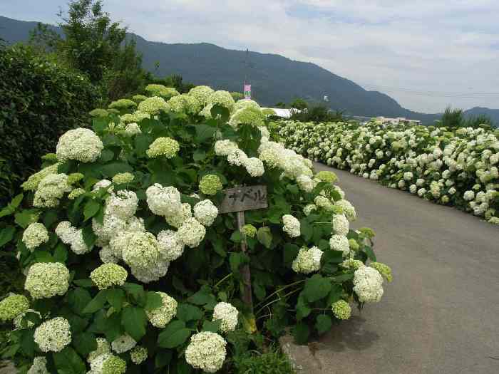 あじさいの里の中ほどに『アナベルの道』で見事に咲いていました。