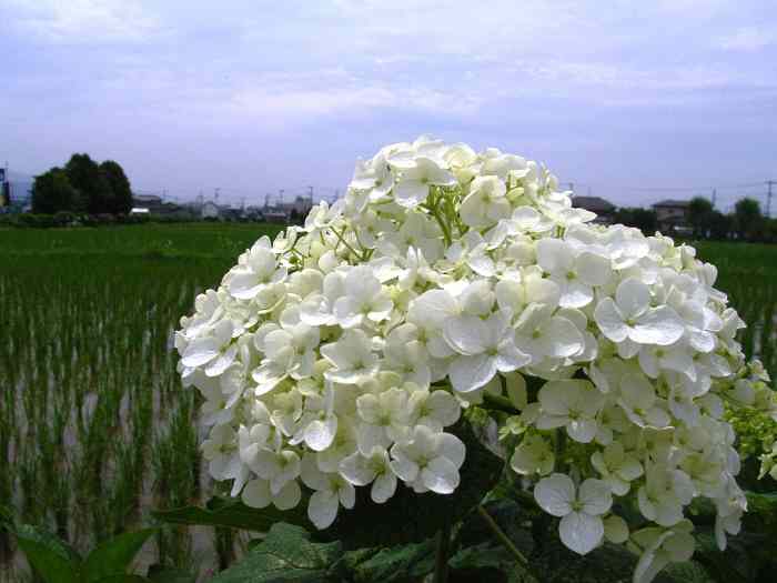 大輪で真っ白な見事なあじさいが10株ぐらい植えられていた。