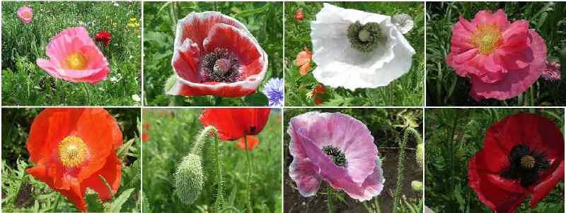 ラベンダー、色とりどりのポピー、ケシ科の花、紫陽花、矢車草