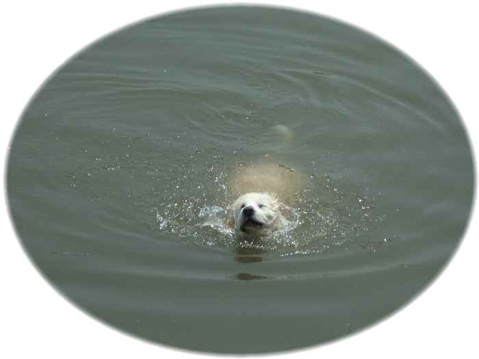 すいすいと上手に犬かきで悠々と泳いでいる。