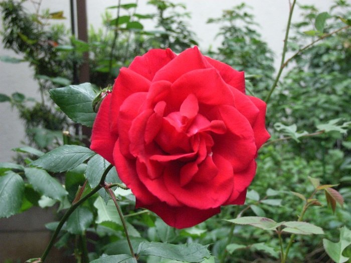 我が家にも元気付けるように真っ赤なバラが一輪