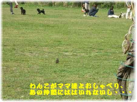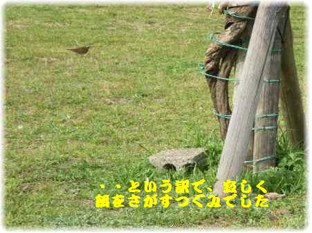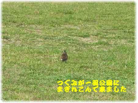 芝生の広場へ行ってみるとつぐみがお散歩・・・