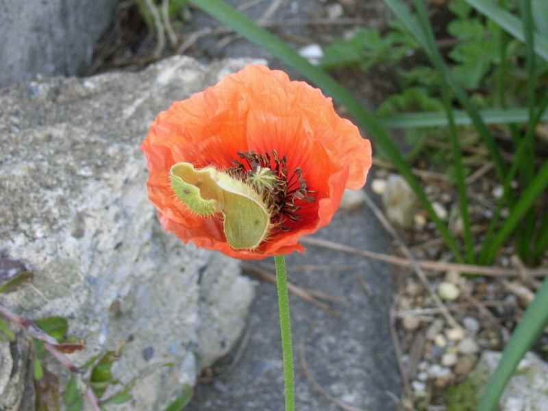 空き地でよく見かけるオレンジの「ナガミノヒナゲシ」長実らしい。