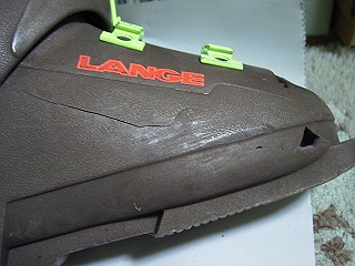今シーズン初スキーなので、乾燥させておいたブーツのインナーをセットしようとすると、なんとシェルが