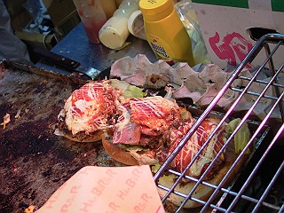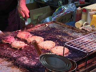 中上:鉄板で焼かれるパティ