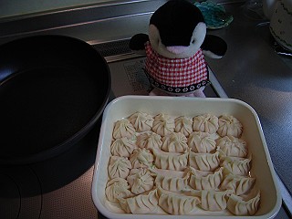 餃子の皮を買ってきて・・・。