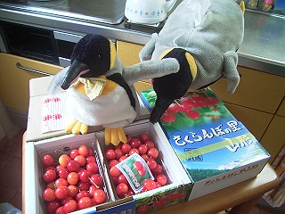 左:さくらんぼとペンギン達(6月30日撮影)