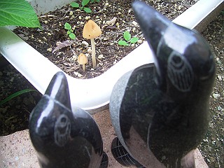 中央:プランターを見る石の親子(7月4日撮影)