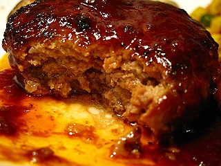 ハンバーグ、エリンギのガーリック炒め、ミックスベジタブルのバター炒め、