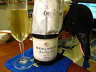 コーンスープ、酸化防止剤無添加のスパークリングワイン、無農薬あきたこまちのご飯