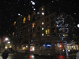 中央:リフト券売り場からの眺め(2月7日7時5分撮影)