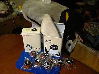缶入りのチョコで、個包装にもペンギンの柄が付いています。