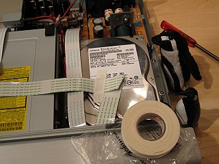 嬉しげに、HDDレコーダーのケースを外してHDDとご対面です。そこで驚いたことには、ウチのHDDレコーダーに搭載されていた物は、