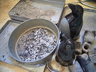 ガラス小物 左が枕、中央上がアイピロー、中央下がおでこクーラー、