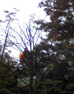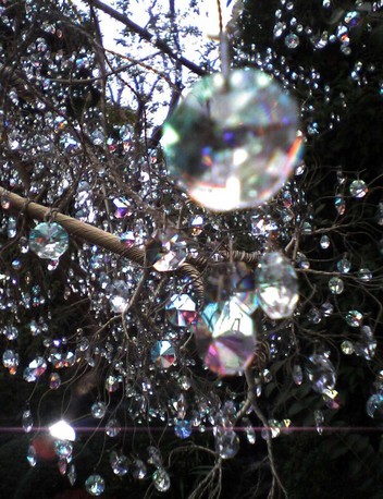 小さなガラスを枯れ枝につけて