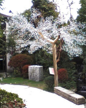 ライトアップで光線を、きらきらきれいなオブジェになっています。