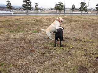 今日、埼玉からお客様が セブちゃんの同胎犬、”きらちゃん” (ブラック) どっかで聞いたことのある名前、でも女の子 久々の再会で〜す! 但し、ヒート中なので、セブ・煌は会えませんでした。 一緒にいるのは”ほのか”ちゃん 8歳の女の子、中々美形、この子もヒート 結局、遊べませんでしたが・・・