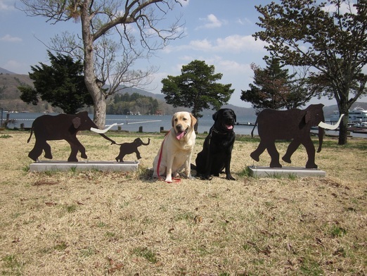 セブと煌はソフトクリームをふたりで分けてたべました。