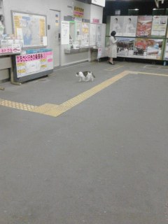 横須賀駅のホームにいるネコ |