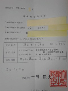招集命令書来ました |