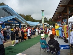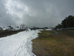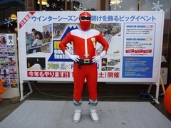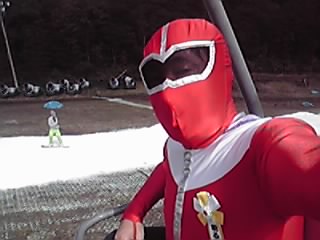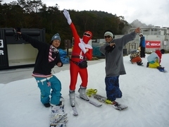 スキー場オープン!着ぐるみの初滑りです。 | ||
