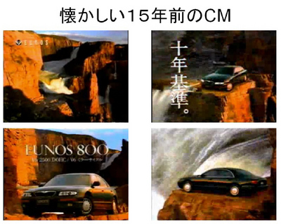 ・・・もせずに今月15年目の車検を受ける愛車のユーノス800、過去数台乗換えてから脱サラ1年前に、お元気ですかぁ〜の日産セフィーロから乗換えたユーノス800だが★10年基準★をモチーフに海外向けにマツダが創り込んだハイエンド車だった。値段もクラウン並だったが、この車に妙に惚れ込んでしまった。セダンながら国産離れした低姿勢デザインと絶妙な猫足マルチリンクの走行性。正にスポーツセダンだった。