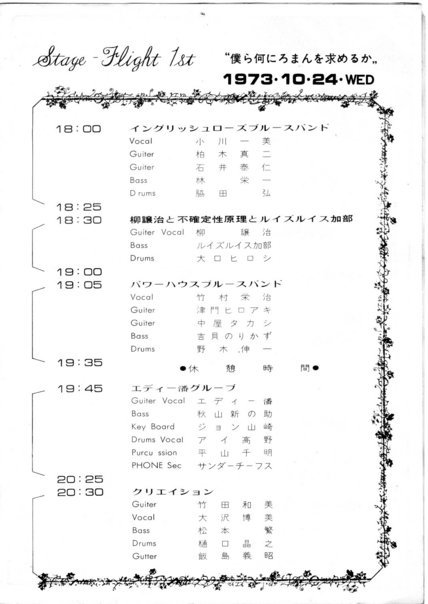 1970年代初頭に発足したイングリッシュローズ・ブルースバンド躍進中のコンサートパンフがでてきた。現在の平塚レイン・ハリー小川氏をリーダーとしたブルースロックバンドでリーダー以外、全員19歳の若者だった。場所は平塚市民センターで1200席満席状態で地元の音楽活性化を担った記憶がある。