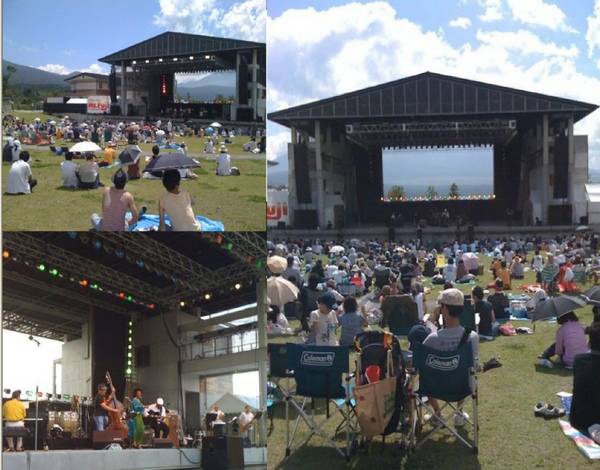 荒天を予想していた山中湖周辺は朝から快晴で、照付ける太陽は容赦なく我々のひ弱な肌を焼き尽した。そして一流ジャズメン達の熱い演奏は我々の感性も燃えさせた♪すぐ後ろに聳える富士山も絶景でした。